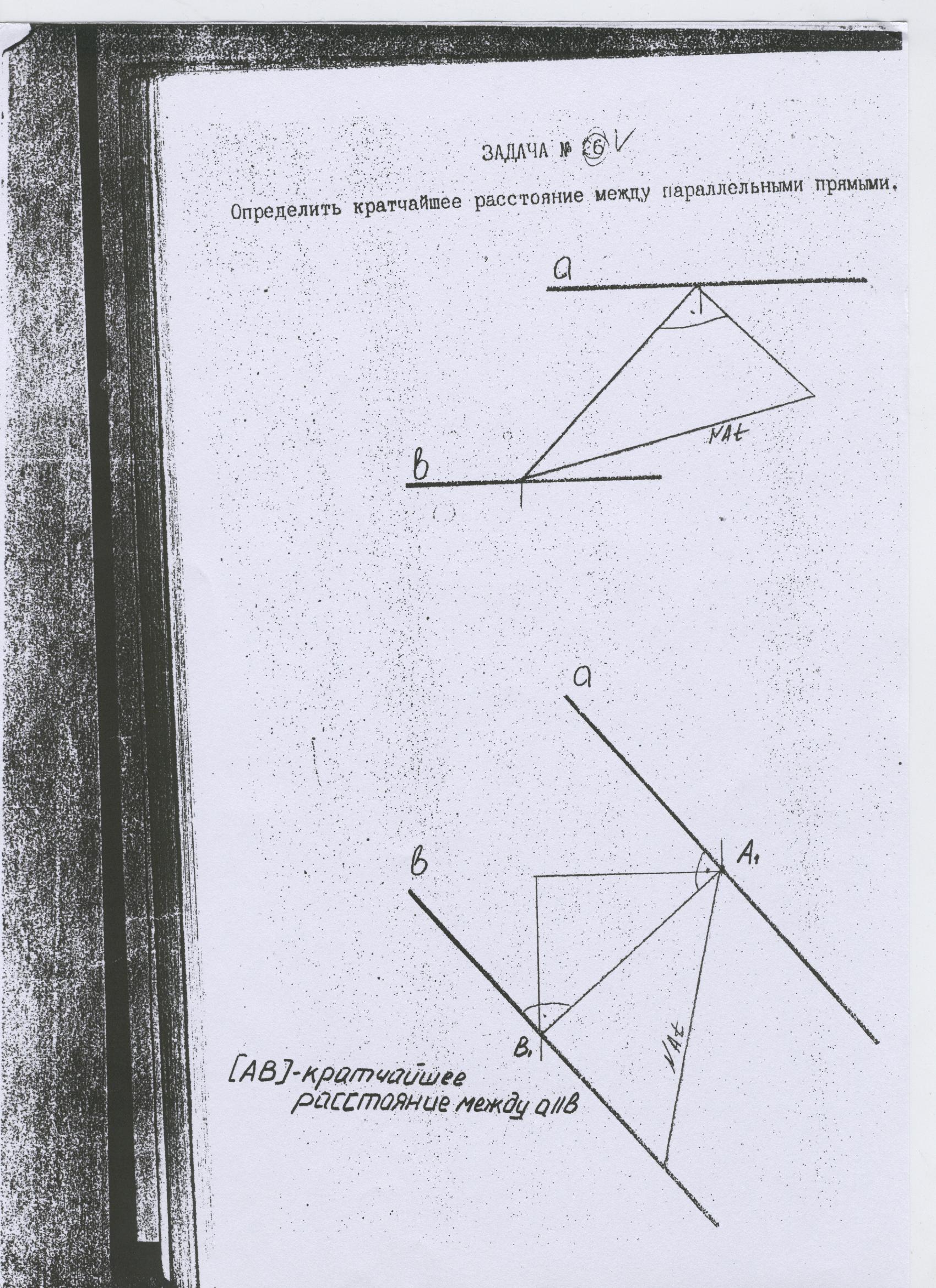 Определить кратчайшее расстояние между параллельными прямыми.