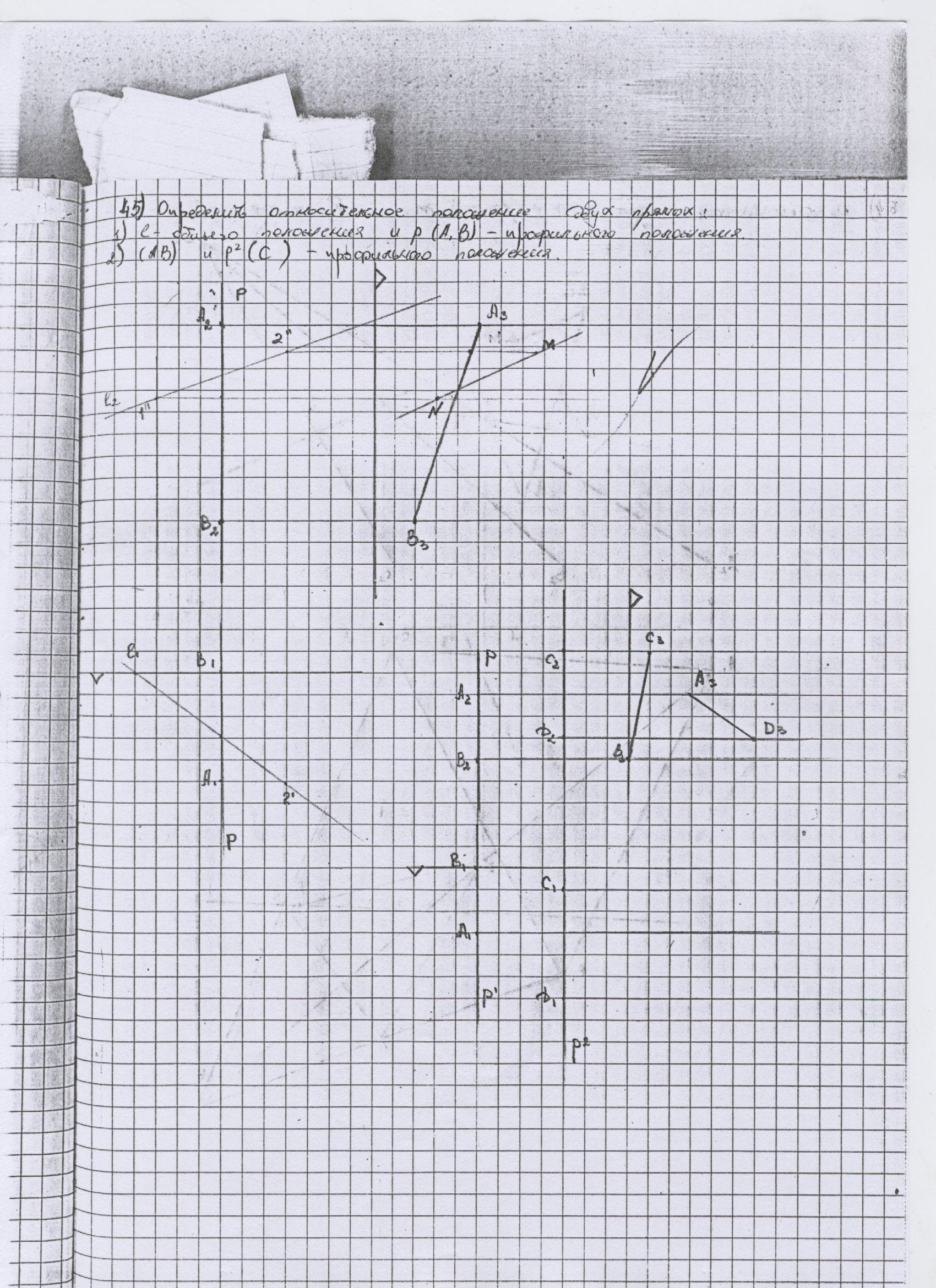 Решение задачи №45 - Начертательная геометрия. Определить относительное положение двух прямых в общих и профильных положениях.
