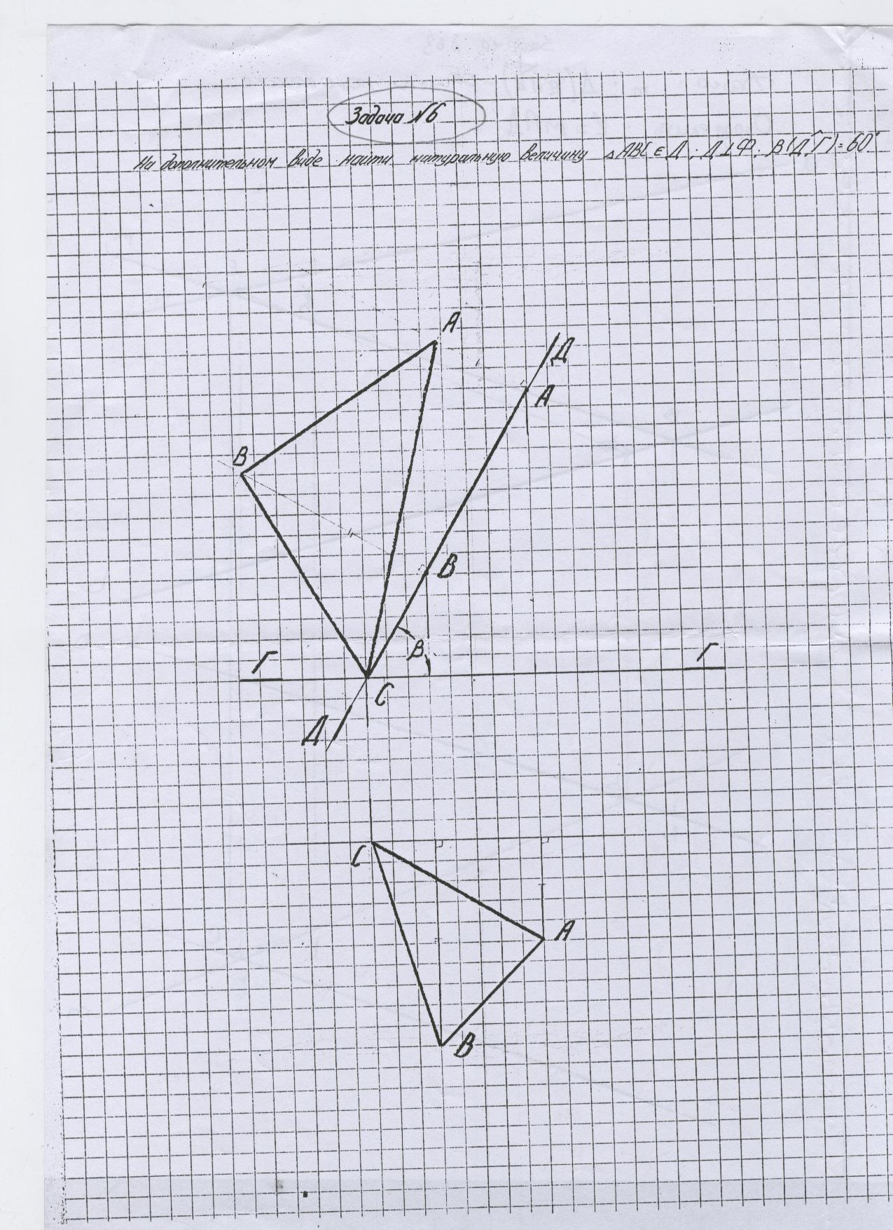 На дополнительном виде найти натуральную величину треугольника АВСеД; Д перпендикулярно Ф: в(угол Д-Г)=60