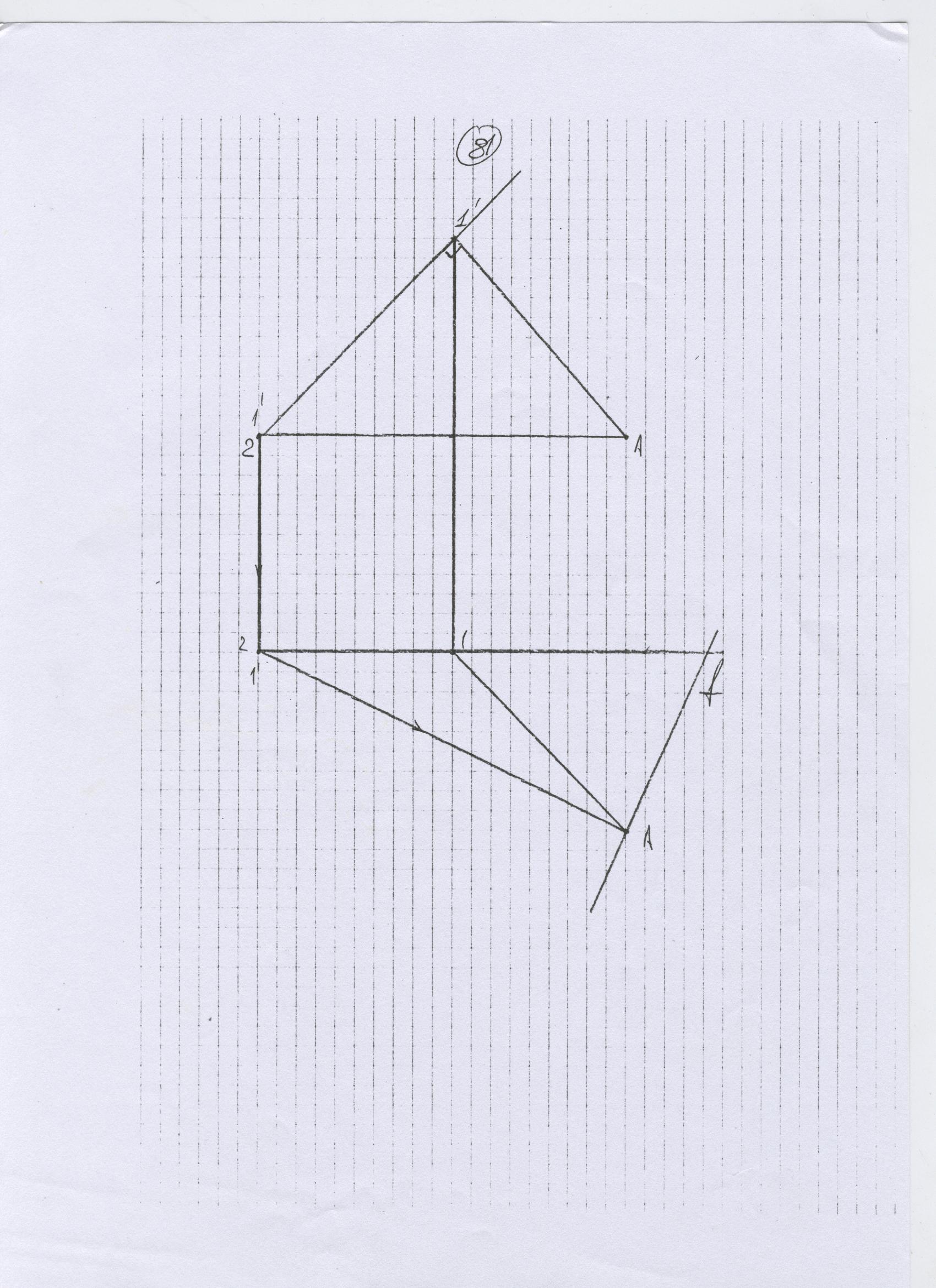 Решение задачи №81 - Начертательная геометрия. Определить кратчайшее расстояние от точки А до прямой f.