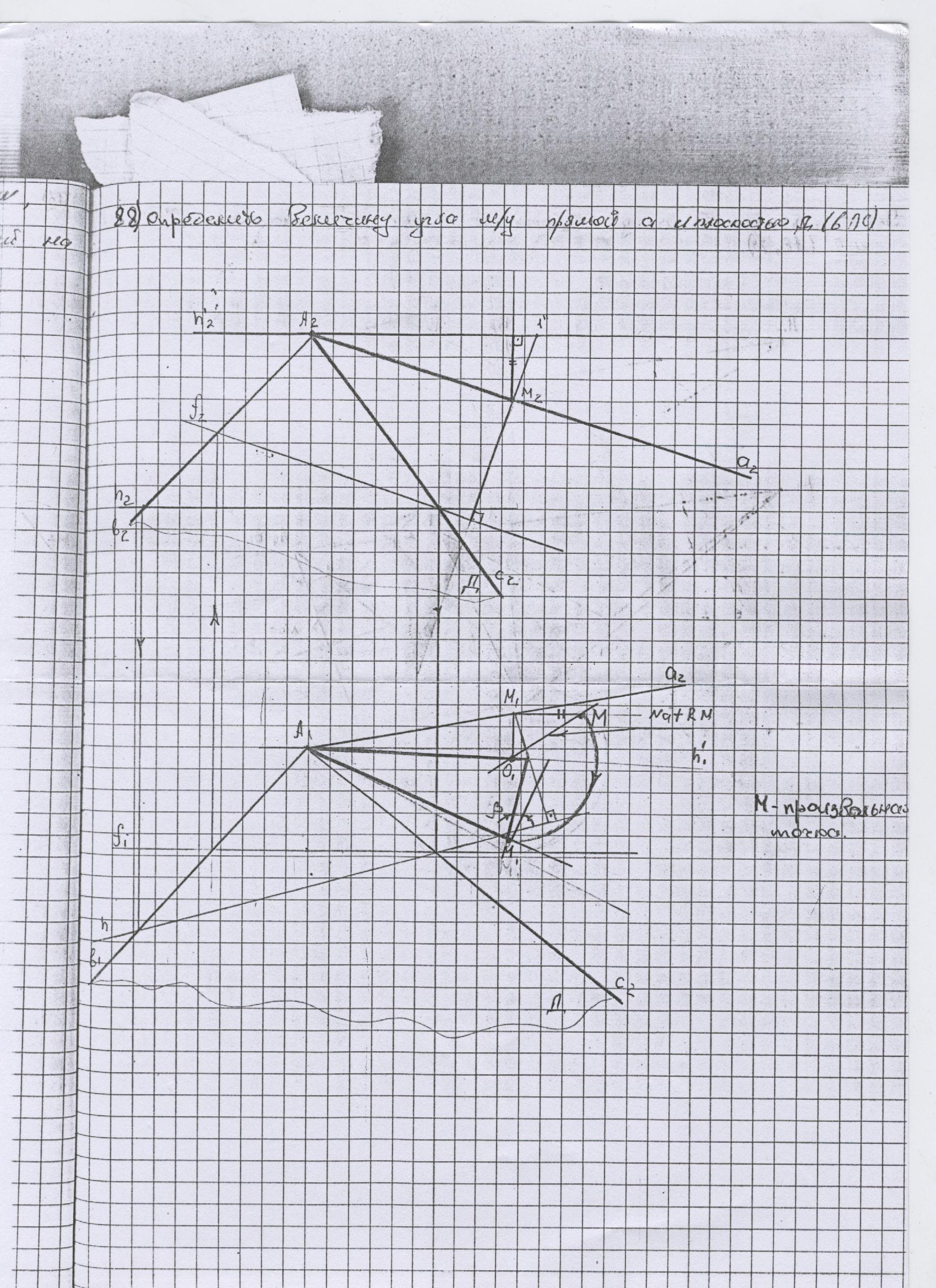Решение задачи №88 - Начертательная геометрия. Определить величину угла между прямой "a" и плоскостью L.