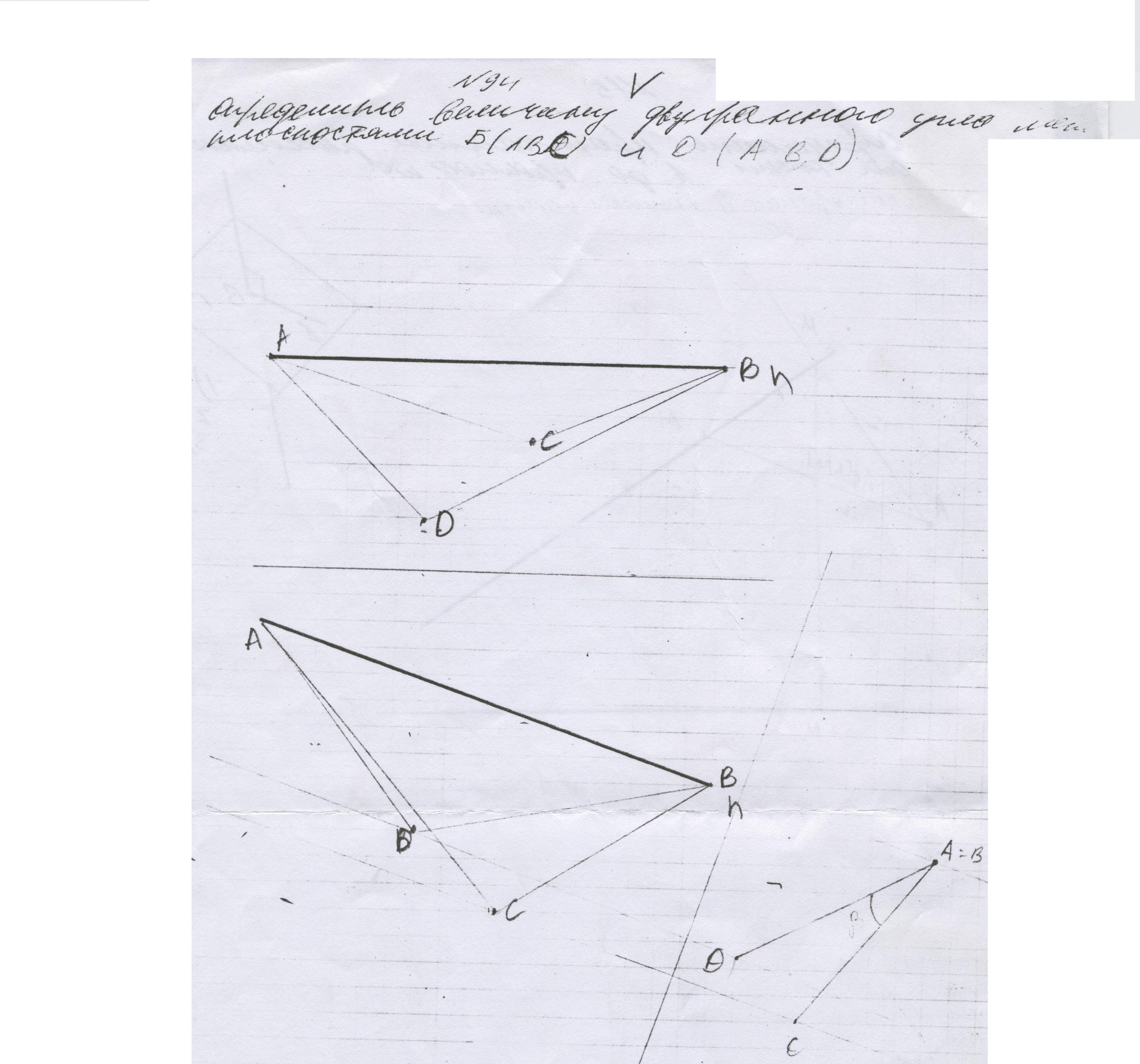 Решение задачи №96 - Начертательная геометрия. Определить величину двугранного угла между плоскостями Б и Д